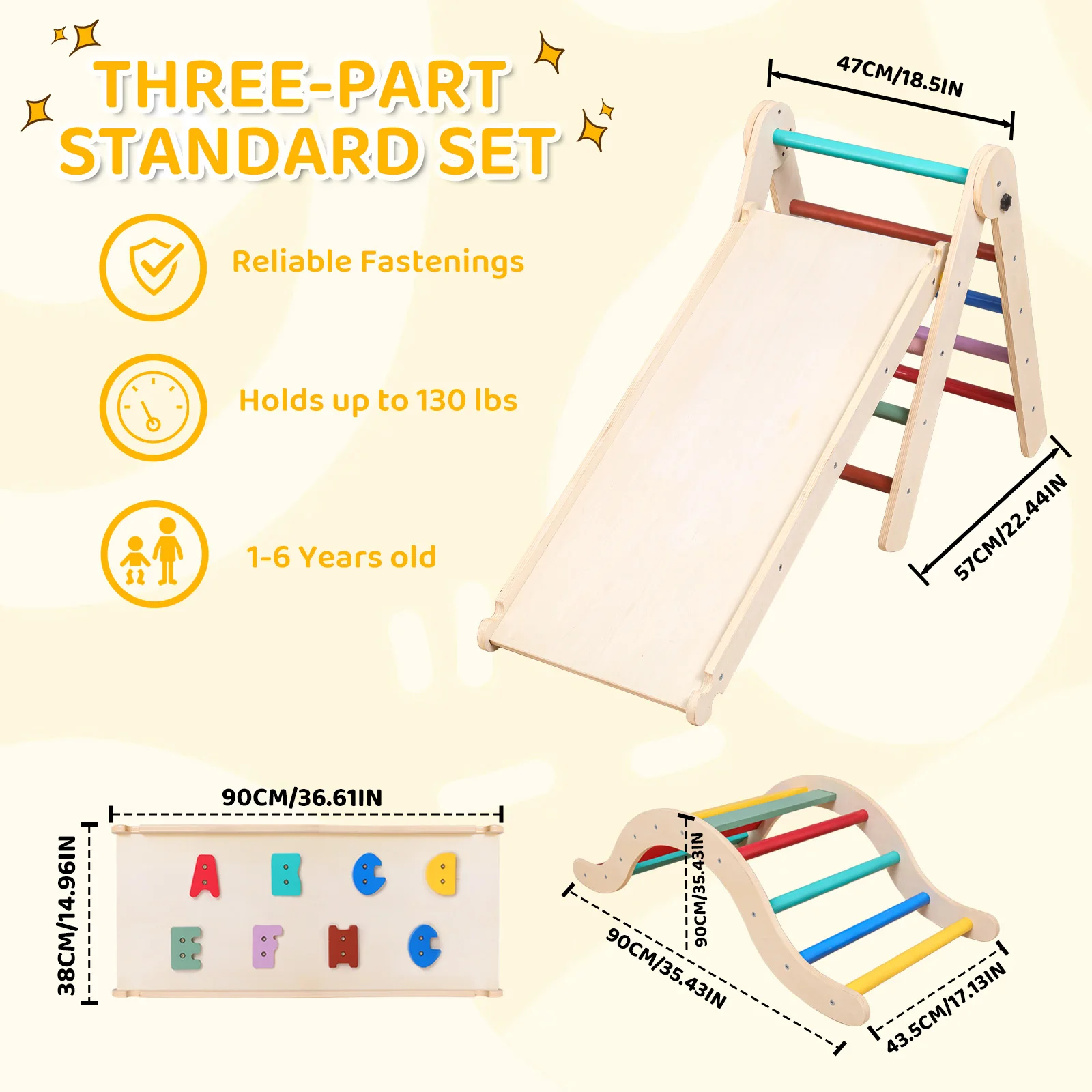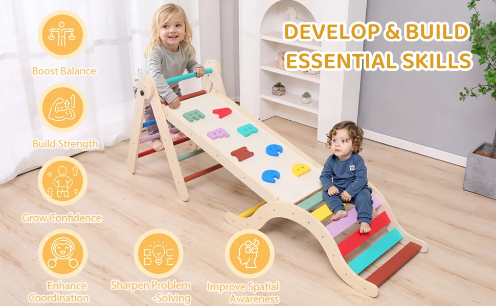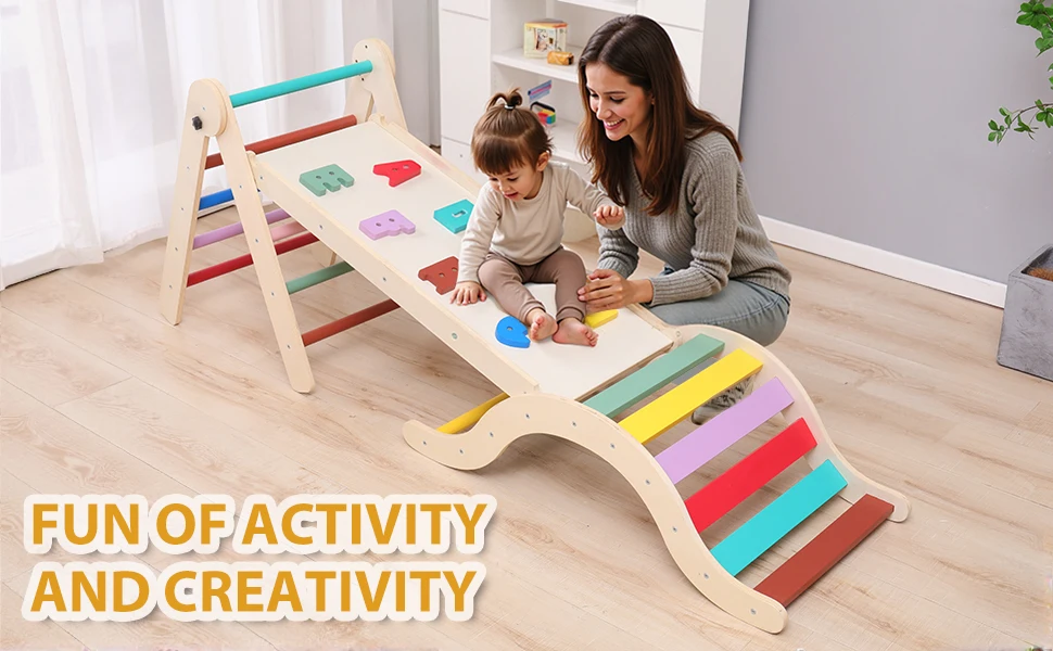 Constructed from premium solid natural wood, the frame is durable, aesthetically pleasing, and suitable for frequent use. The ergonomic arch design offers a gentler incline, allowing children to climb, pause, and rest comfortably, supporting confidence and safe risk-taking.