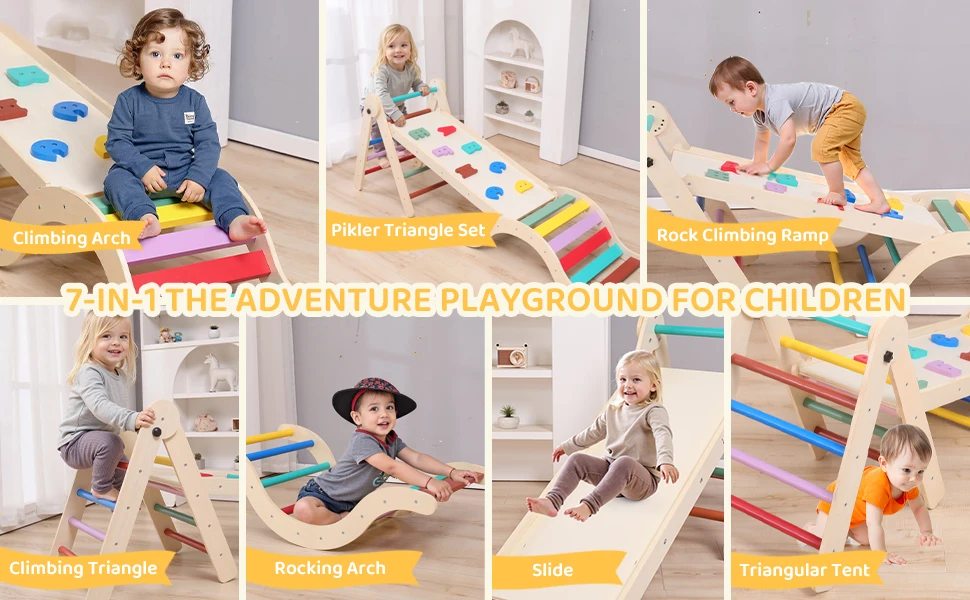 Toddler Wooden Climbing Frame, 7-in-1