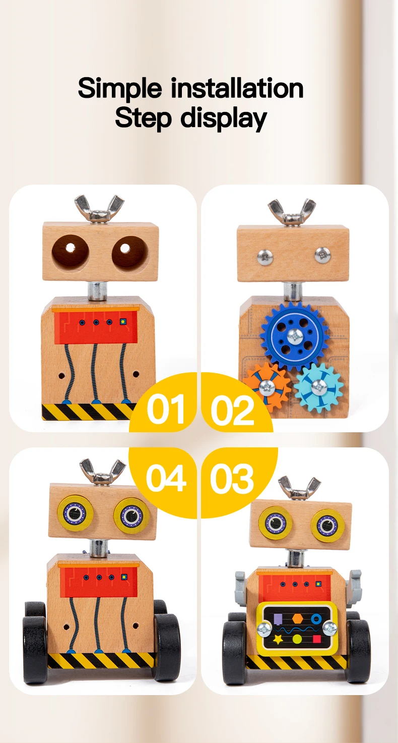 Exercise your kids' spatial imagination and thinking ability, improve hand-eye coordination, and learn basic mechanical principles and physics knowledge through our robot building kit.